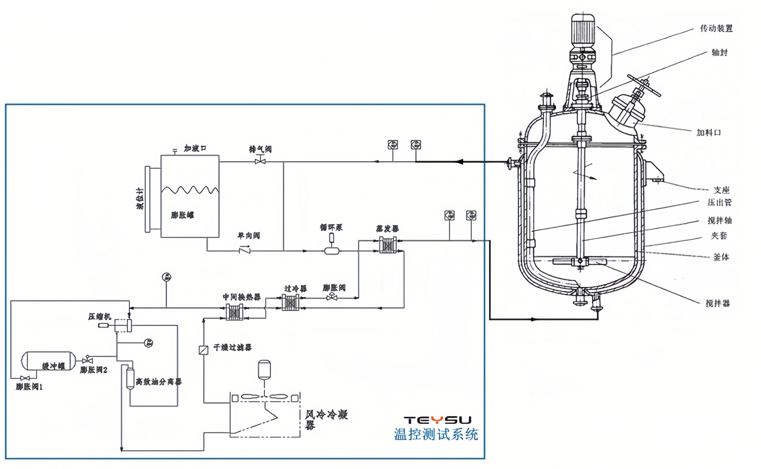 ∎溫度調節:溫度控制器通過調節加熱或冷卻系統來控制反應釜的溫度。根據溫度控制器的設定溫度和實際溫度之間的差異,控制器將相應地調節加熱功率或冷卻速度,以使反應釜內的溫度保持在設定溫度范圍內。 |