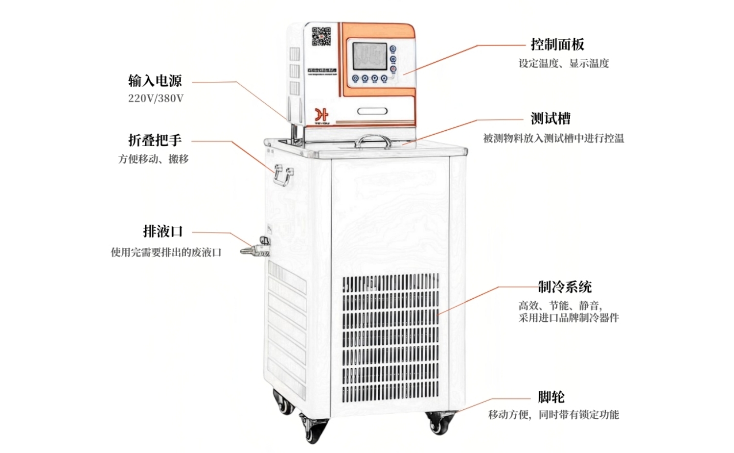 ∎大屏幕液晶顯示,數顯分辨率0.01℃。帶排水閥門,根據客戶要求可帶腳輪。 ∎自研PID溫度控制技術,配有高性能的溫度傳感器以及全進口的電子原件等組成。 ∎軟件系統方便修正顯示溫度與實際溫度的誤差,溫度修正分辨率高達0.01℃,使顯示溫度值準確無誤。 ∎具有超溫保護、超溫鳴叫報警,可設定超溫報警溫度,超溫時可自動切斷負載。 ∎可選配RS485通訊接口,實現數據傳輸進行遠距離控制。 ∎豐富的安全保護裝置:具有斷電保護功能、具有上下限溫度報警設定功能、低水位保護和報警功能、溫度失控保護和報警功能、加熱裝置具有低水位防干燒功能。 ∎高效全封閉壓縮機組制冷,降溫速度快,具有過熱過電流等多重保護。 ∎先進的內循環和外循環系統,內循環使溫度均勻穩定,外循環泵輸出6L/min、13L/min的流量恒溫液體去建立機外第二恒溫場,還可作為冷源去冷卻機外實驗負載。 ∎內膽、臺面均為全不銹鋼,機殼為冷軋鋼噴塑,清潔衛生,美觀耐腐蝕。 |