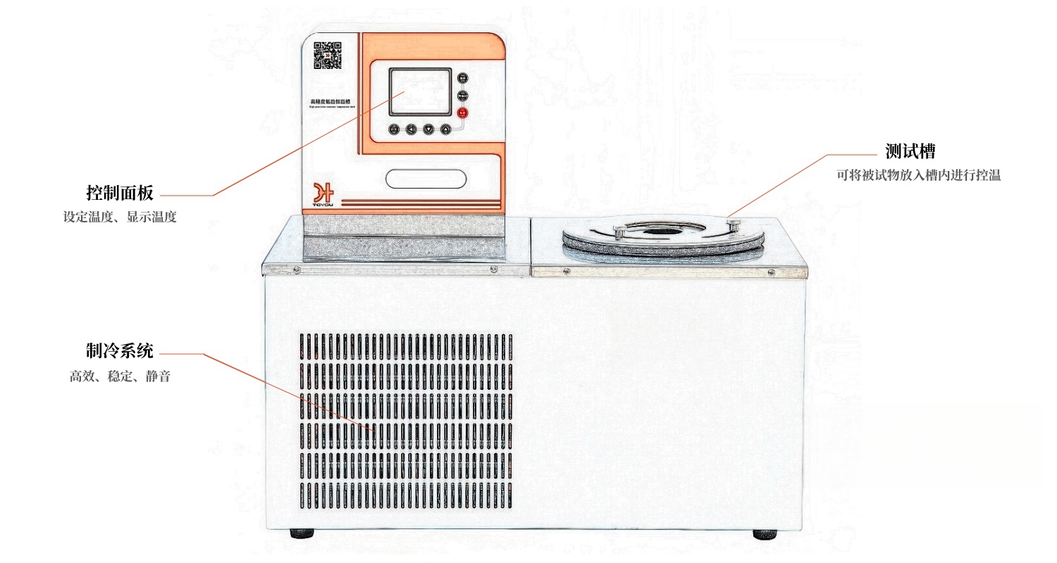∎設備采用臥式結構,將測試區(qū)域和制冷系統從傳統的立式排布變成橫式排布,更好的將設備放在桌面或者通風櫥柜中。 ∎大屏幕液晶顯示,數顯分辨率0.01℃。帶排水閥門,根據客戶要求可帶腳輪。 ∎自研PID溫度控制技術,配有高性能的溫度傳感器以及全進口的電子原件等組成。 ∎軟件系統方便修正顯示溫度與實際溫度的誤差,溫度修正分辨率高達0.01℃,使顯示溫度值準確無誤。 ∎具有超溫保護、超溫鳴叫報警,可設定超溫報警溫度,超溫時可自動切斷負載。 ∎可選配RS485通訊接口,實現數據傳輸進行遠距離控制。 ∎豐富的安全保護裝置:具有斷電保護功能、具有上下限溫度報警設定功能、低水位保護和報警功能、溫度失控保護和報警功能、加熱裝置具有低水位防干燒功能。 ∎高效全封閉壓縮機組制冷,降溫速度快,具有過熱過電流等多重保護。 ∎先進的內循環(huán)和外循環(huán)系統,內循環(huán)使溫度均勻穩(wěn)定,外循環(huán)泵輸出6L/min、13L/min的流量恒溫液體去建立機外第二恒溫場,還可作為冷源去冷卻機外實驗負載。 ∎內膽、臺面均為全不銹鋼,機殼為冷軋鋼噴塑,清潔衛(wèi)生,美觀耐腐蝕。